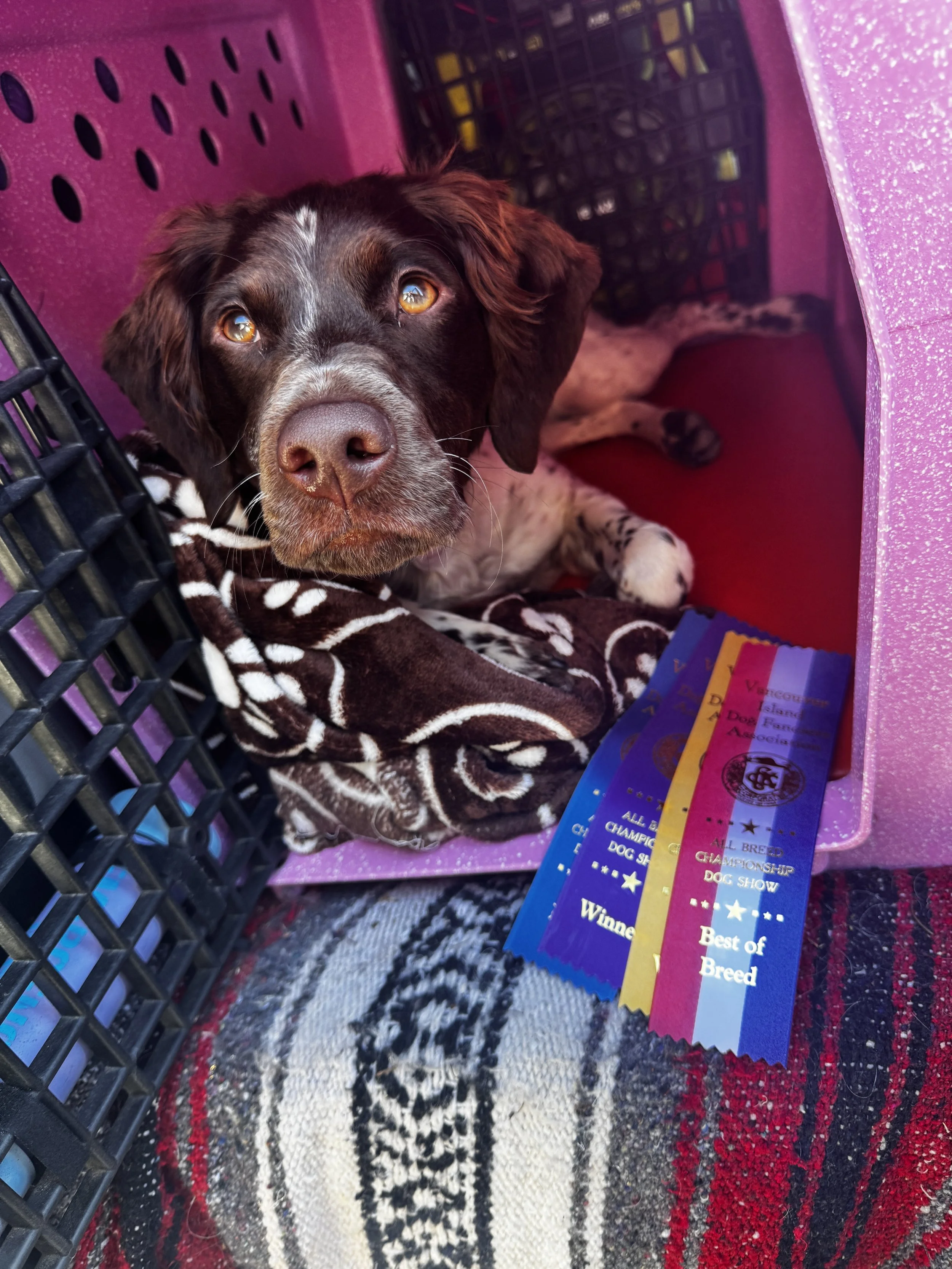 In the last few years, I began working with more high-drive dogs and getting involved in dog sports. In 2023, I got my first sport dog, Easy, a little Brittany who joins in on hiking and is working on becoming a training demo dog to help our clients! In my free time we train for various sports including obedience, field trials, conformation, dock diving, and more!
